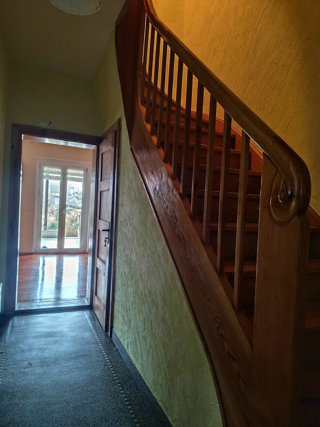 Posiada 5 pokoi, piwnicę, strych i garaż.