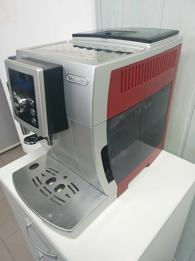 Sprzedam używany ekspres DeLonghi ECAM 23.420.SR w kolorze czerwono-srebrnym.Sprzęt po generalnym serwisie. W pełni sprawny.