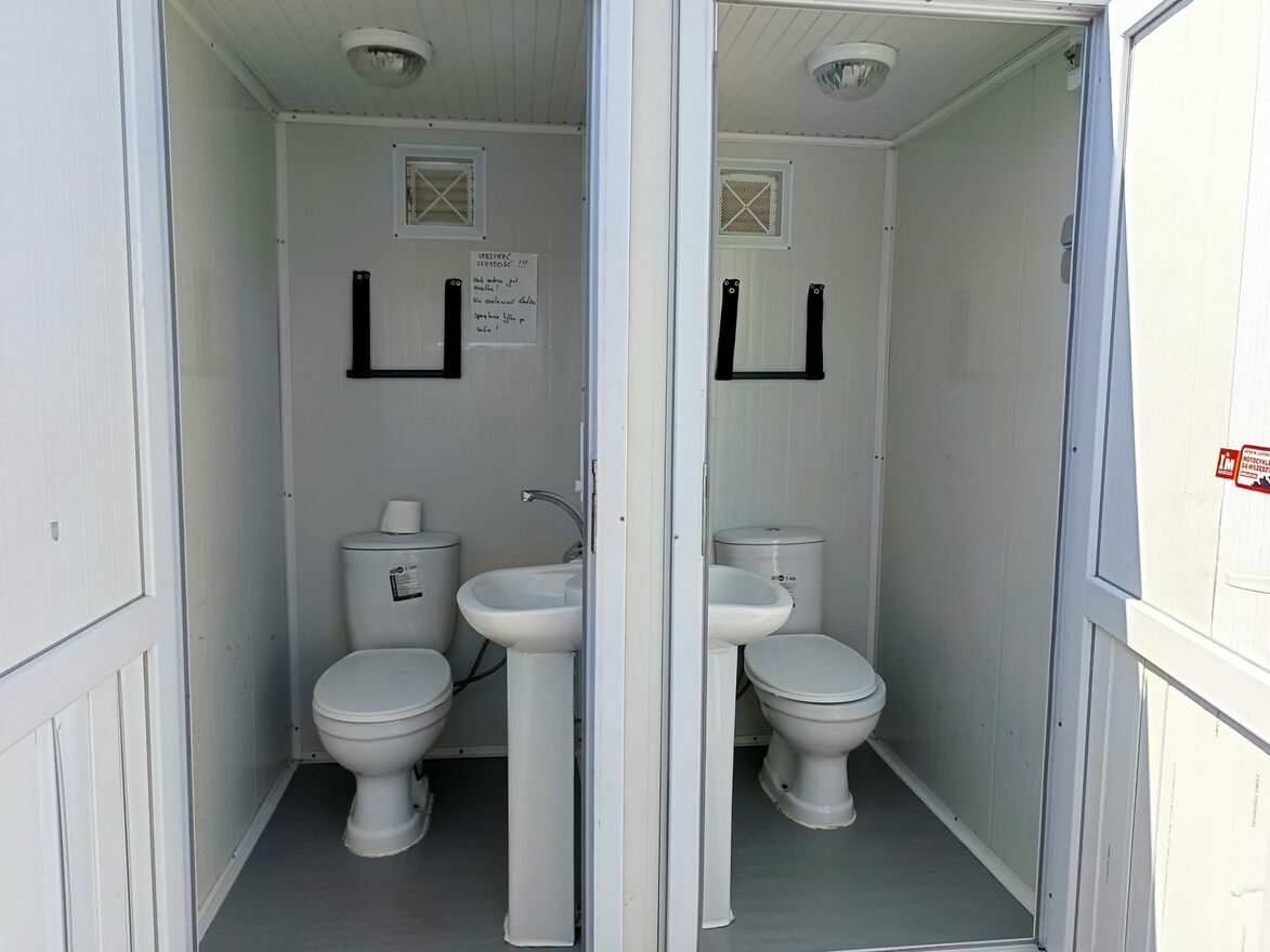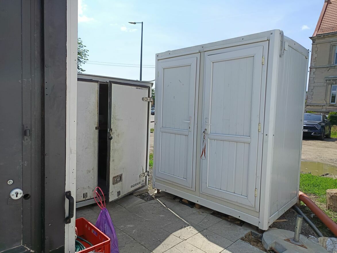 W skład wchodzi również dodatkowy magazyn, w którym znajdują się dodatkowe dwie zamrażarki oraz lodówka i półki. Składzik szczelny, w środku prąd. Podwójna Toaleta zewnętrzna w pełni sprawna.