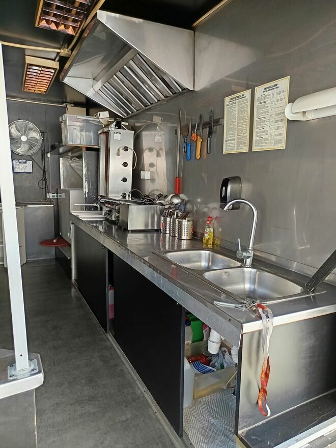 Przyczepa oczywiście jest w pełni sprawna po odbiorze sanepidu z gotowym HACCP. Podłączona do prądu wody i kanalizacji.